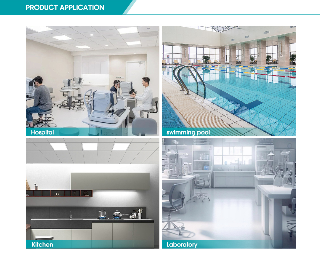 ·Stainless steel pressure rods and screws--passed the 24H salt spray test. No LGP 100% PMMA lens, no need to worry about the yellowing of traditional LED panel lights.