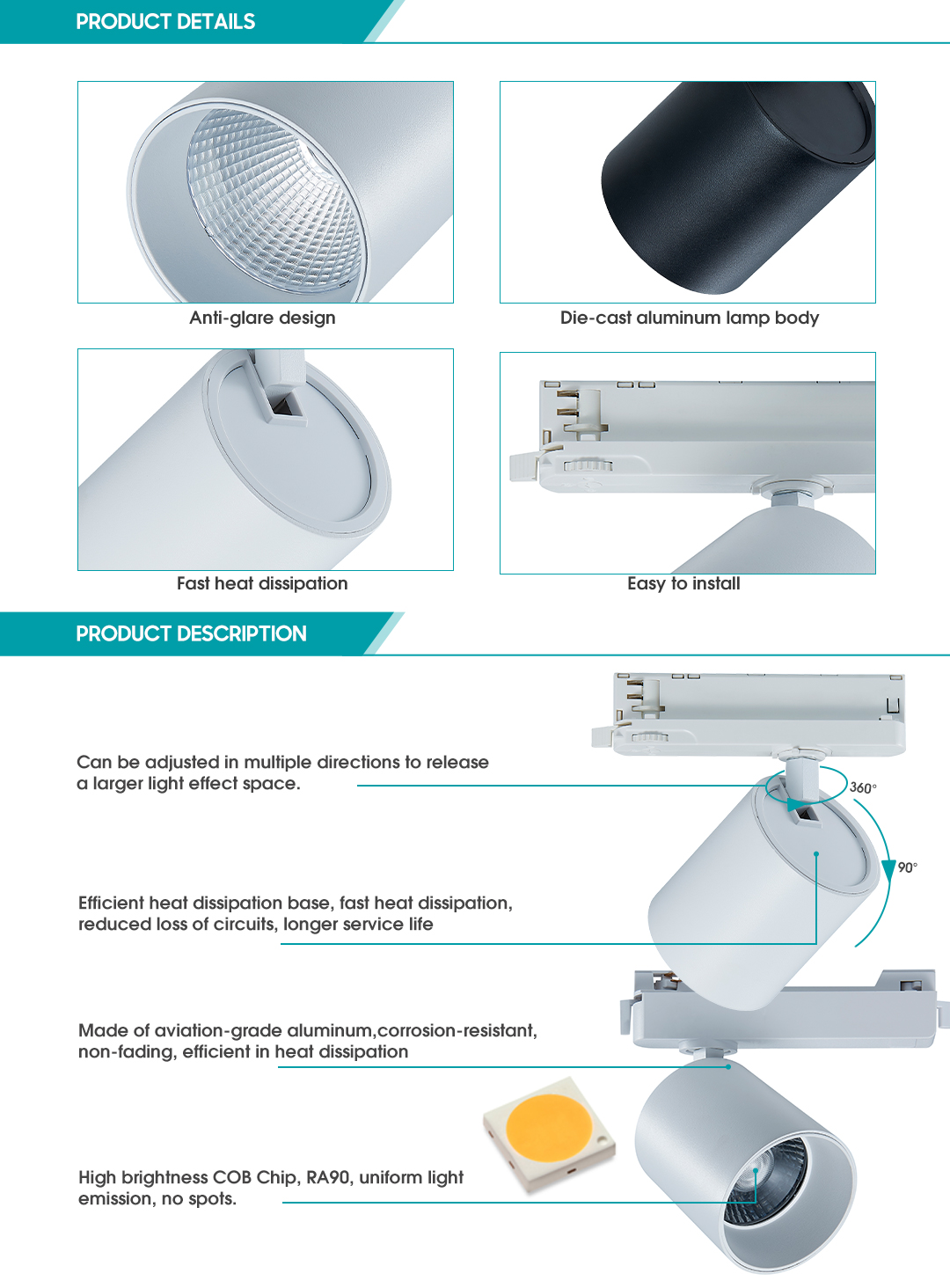 This track light dissipates heat efficiently and quickly, reducing the loss on the circuit and having a longer service life.