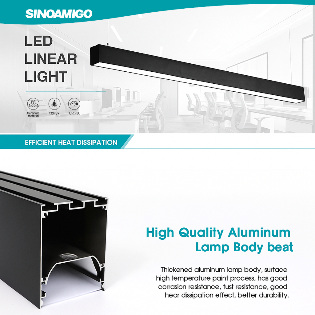 1. The frame of the SC04 line lamp is made through multiple processes such as die-casting, grinding, and polishing, and is then painted at high temperatures to strive for perfection. The lampshade is made of high-quality acrylic, which has strong light transmittance, exquisite craftsmanship, and durability, highlighting modern simple and fashionable art.
