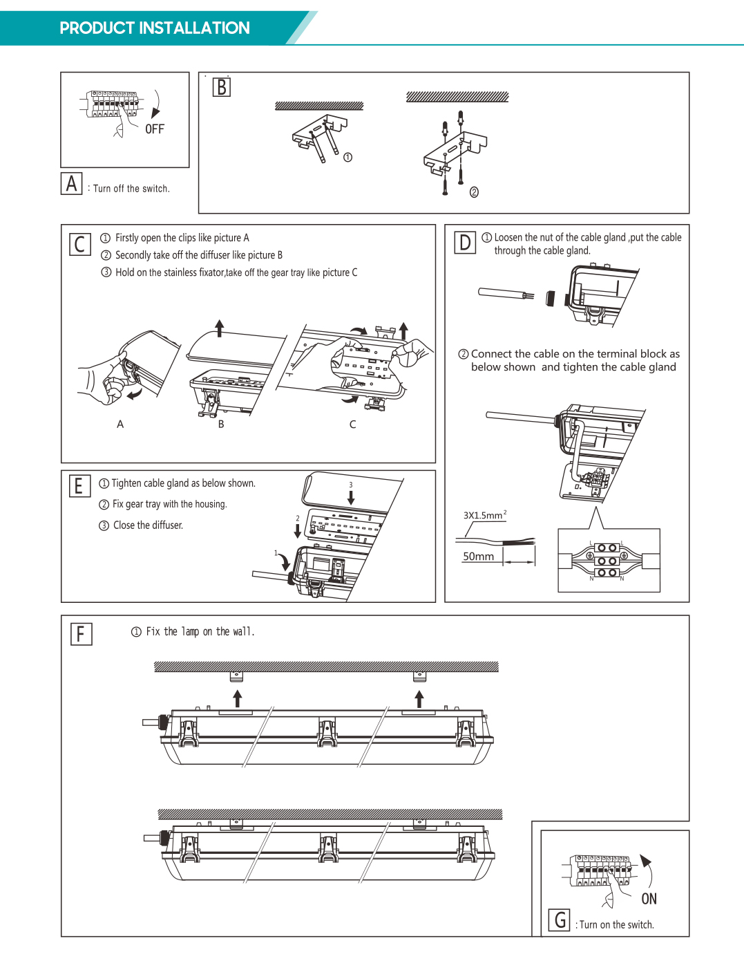 3. The installation is convenient and fast. The SW-E tri-proof light supports surface installation and suspension installation. There is a stainless steel mounting bracket on the back, which is easier to install and fix.