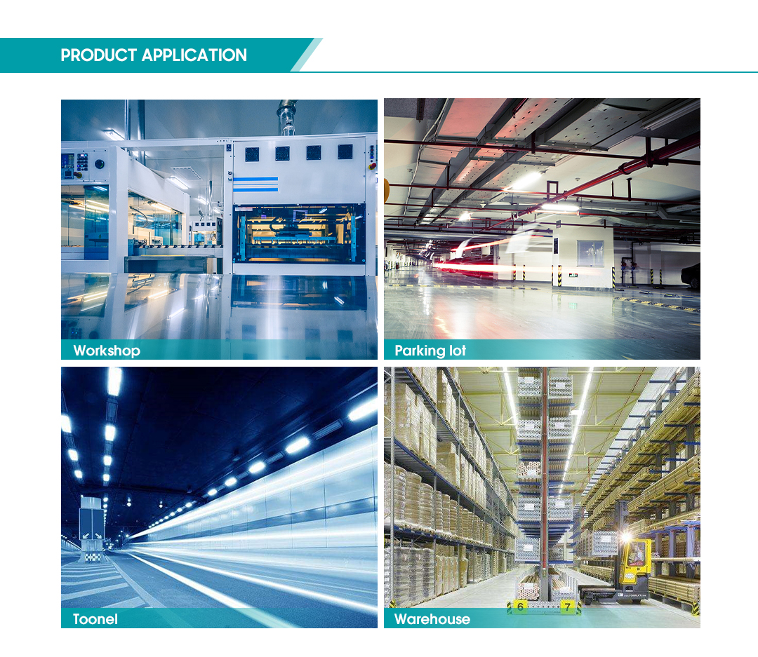 This product has a wide range of application scenarios, suitable for factories, warehouses, tunnels, subways, airports, supermarkets, parking lots, gas stations, cold storage, exhibition hall lighting and other scenarios.
